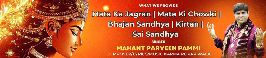 Mahant Parveen Pammi, best Jagran party and Mata ki Chowki organizer, is one of the most renowned devotional singers who perform at Mata ki Chowki and Mata ka Jagran, events hosted for a devotional purpose. Mahant Parveen Pammi and his band perform with a top-quality music system, including high-power speakers, adding more energy and colors to any devotional event. Today, Mahant Parveen Pammi is a celebrated singer in the devotional music industry. He performs for a wide range of divine events and occasions, including Jagran, Mata ki Chowki, Bhajan Sandhya, Kirtan, Sai Sandheya, Krishan Sandheya, Akhand Ramayan Path, Ramcharitmanas Sunderkand Path, Shri Bala Ji Kirtan, Shri Khatu Shyam Ji Kirtan, Shri Sundarkand Paath, Shri Mandabhaavat Ramayan Paath, Pooja or Hawan and all types of devotional programs, bringing devotion, energy, and musical excellence to every performance.